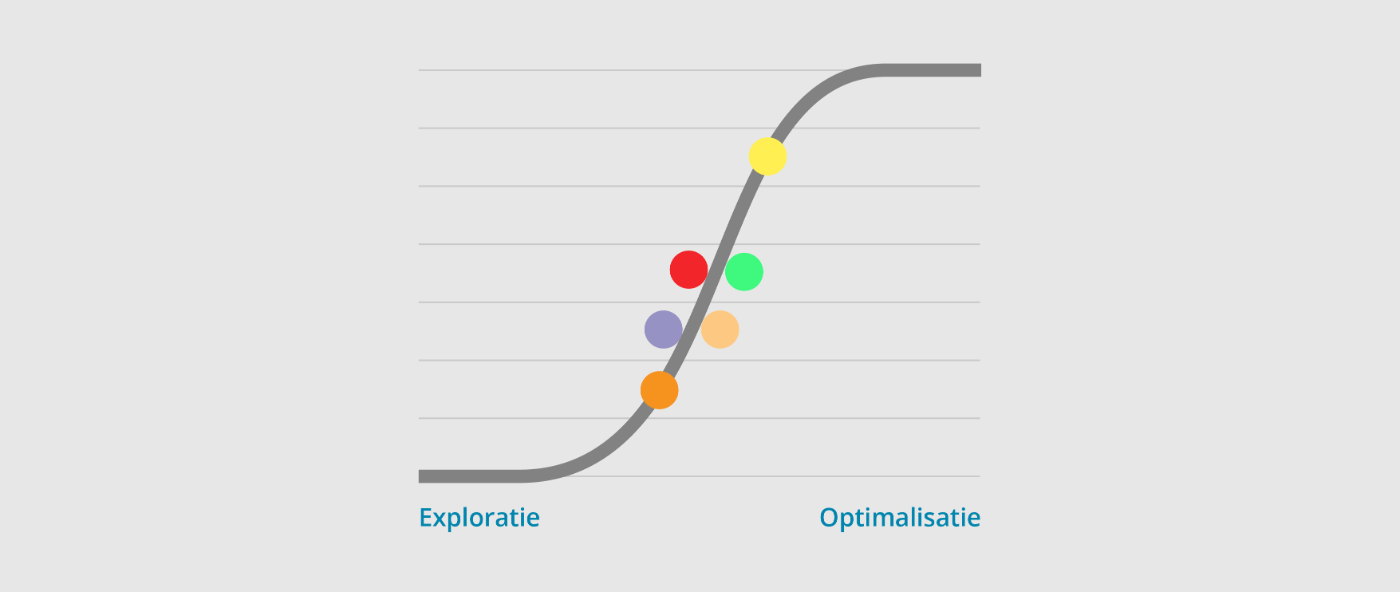 De tweede drijfveer betreft ‘exploratie’: bent u, bij het streven naar verandering vooral gericht op optimalisering en borging van het bestaande of loopt u met name warm voor het ontdekken van nieuwe mogelijkheden?